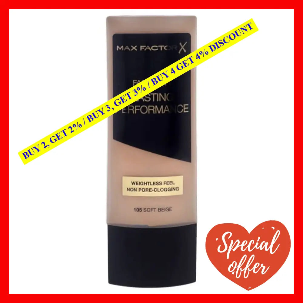Introducing the Lasting Performance Long Lasting Foundation - 105 Soft Beige by Max Factor, the ultimate beauty essential for women seeking flawless coverage that lasts all day long. This 35ml foundation, specifically designed to suit all skin types, is the perfect addition to your makeup routine.