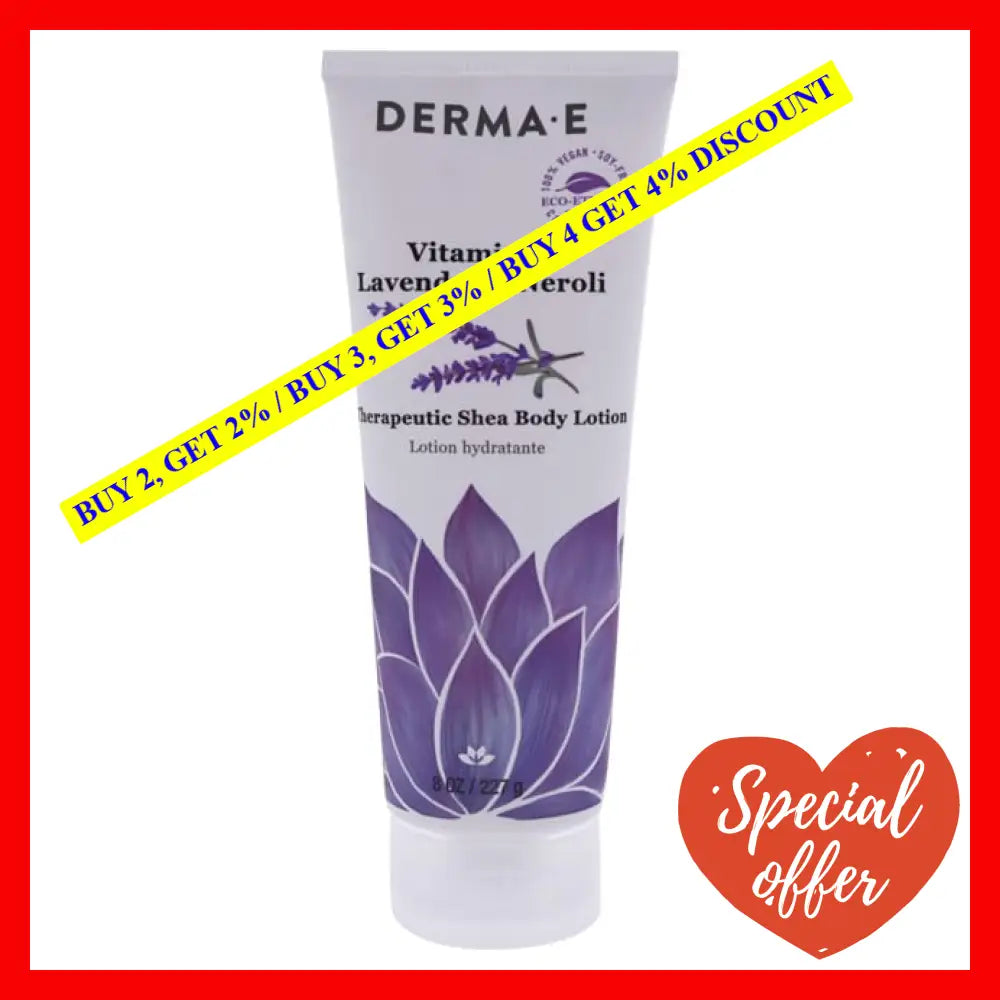 Introducing the Vitamin E Therapeutic Shea Body Lotion by Derma-E, a powerful and rejuvenating skincare solution suitable for both men and women. This 8 oz body lotion is carefully crafted to provide deeply nourishing hydration while soothing your senses with the delightful scent of lavender and neroli.