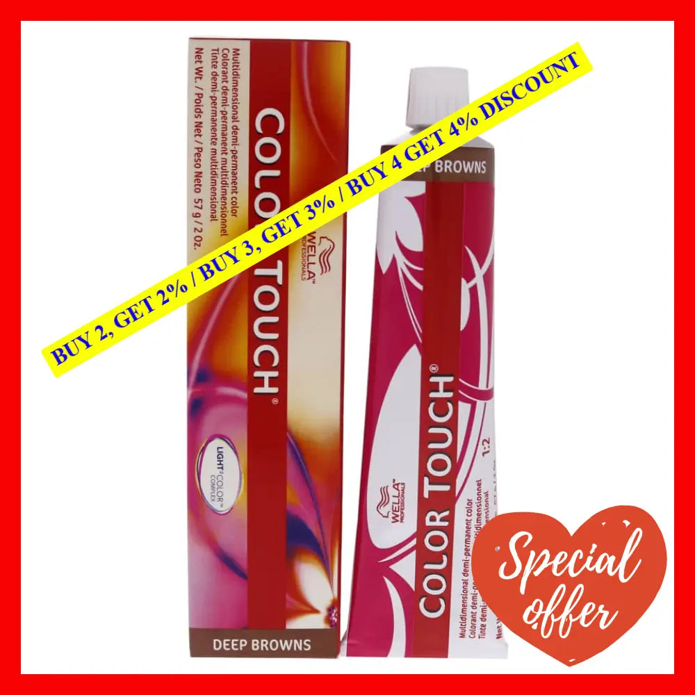 Color Touch Demi-Permanent Color - 4 71 Medium Brown-Brown Ash by Wella is a breakthrough product in the field of hair coloring. Made for both men and women, this 2 oz hair color is perfect for you if you want to revamp your hair color without any damage. Color Touch is a demi-permanent color that gives you vibrant color that lasts up to 24 washes.\n\nThe 4 71 Medium Brown-Brown Ash shade is perfect for people looking for a natural brown color with ash undertones that will complement their skin tone. The unique formulation of this hair color guarantees even coverage and prevents hair damage. It has a conditioning complex that nourishes the hair from within, making your hair look shiny and silky-soft.\n\nColor Touch Demi-Permanent Color - 4 71 Medium Brown-Brown Ash by Wella has a simple application process, and you can easily do it yourself at home. It is ammonia-free and does not have any unpleasant odor. This product is the perfect solution for people who are looking for a modern hair color that is long-lasting and gives a healthy, natural-looking shine.\n\nIn conclusion, Color Touch Demi-Permanent Color - 4 71 Medium Brown-Brown Ash by Wella is a game-changer in the hair coloring industry. It ticks all the boxes for anyone looking for a quality hair color that is easy to apply and long-lasting. Try it today for healthy, beautiful hair that will turn heads.