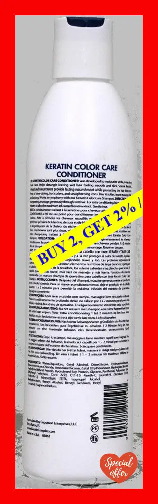 \nThe rich, luxurious formula provides instant detangling and moisture, leaving hair feeling soft and silky with a healthy, radiant shine. It helps to reduce frizz, static, and flyaways, providing a smooth, sleek finish that lasts all day. Perfect for both men and women, this Keratin Color Care Smoothing Conditioner is a must-have in your hair care routine, providing long-lasting, salon-quality results that you can enjoy from the comfort of your own home.