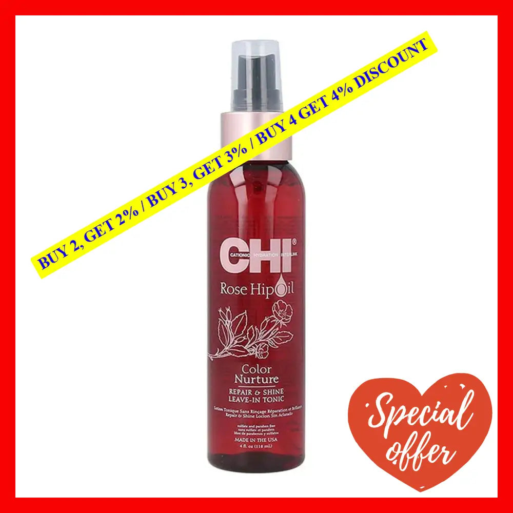 The Rose Hip Oil Color Nurture Repair and Shine Leave-In Tonic by CHI is an exceptional hair spray that is designed to nurture, repair, and add shine to your hair. This product is perfect for both men and women, and it comes in a 4 oz bottle that is easy to use.