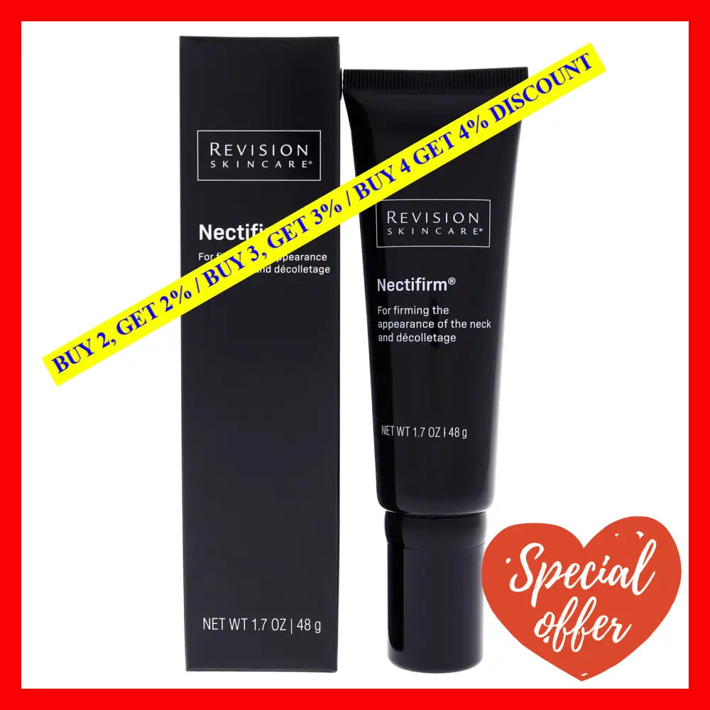 Introducing Nectifirm Cream by Revision, a remarkable skincare solution designed to nourish and rejuvenate the delicate skin on your neck and d?ollet? Suitable for both men and women, this 1.7 oz cream is the ultimate solution for a smoother and more youthful-looking appearance.\n\nWith age and environmental factors, the skin on the neck and d?ollet?tends to lose its firmness and elasticity, resulting in the appearance of sagging and wrinkles. Nectifirm Cream tackles these concerns head-on, delivering visible results in just a few weeks.\n\nThis unique formula is packed with powerful ingredients that work together to address multiple signs of aging. Palmitoyl Tripeptide-5 helps firm and tone the skin, while Bamboo Extract improves elasticity for a more lifted appearance. Sodium Hyaluronate and Vitamins C and E deeply hydrate and nourish the skin, promoting a smoother and softer texture.\n\nNectifirm Cream boasts a lightweight and non-greasy texture, making it easy to incorporate into your daily skincare routine. Simply apply a small amount onto clean skin twice a day, gently massaging it into your neck and d?ollet?until fully absorbed.\n\nExperience the incredible transformation of your neck and d?ollet?with Nectifirm Cream by Revision. Say goodbye to the signs of aging and hello to a more youthful and radiant appearance. Order your 1.7 oz cream today, and feel confident in the skin you're in.