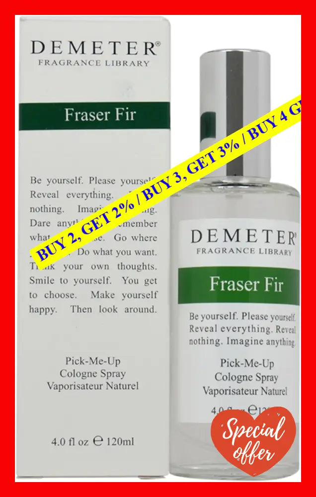 Fraser Fir by Demeter for Women is a refreshing and invigorating fragrance that is perfect for women of all age groups. This 4 oz Cologne Spray is expertly crafted with the finest ingredients to create a scent that is truly unique and refreshing.\n\nPerfect for the winter season, Fraser Fir captures the essence of the forest with its woody and fresh aroma. Its top notes of evergreen and fir needles are complemented by subtle hints of white cedar and white pine. The result is a captivating fragrance that will leave you feeling energized and refreshed.\n\nThis cologne spray is perfect for use during the day or night. Its long-lasting scent is perfect for any occasion, whether you're headed to work or a night out with friends. It comes in a sleek glass bottle, with a spray pump for easy and convenient application.\n\nFraser Fir by Demeter for Women is a great addition to any fragrance collection. It's a timeless scent that will never go out of style. Try it today and experience the refreshing and invigorating fragrance that is Fraser Fir.
