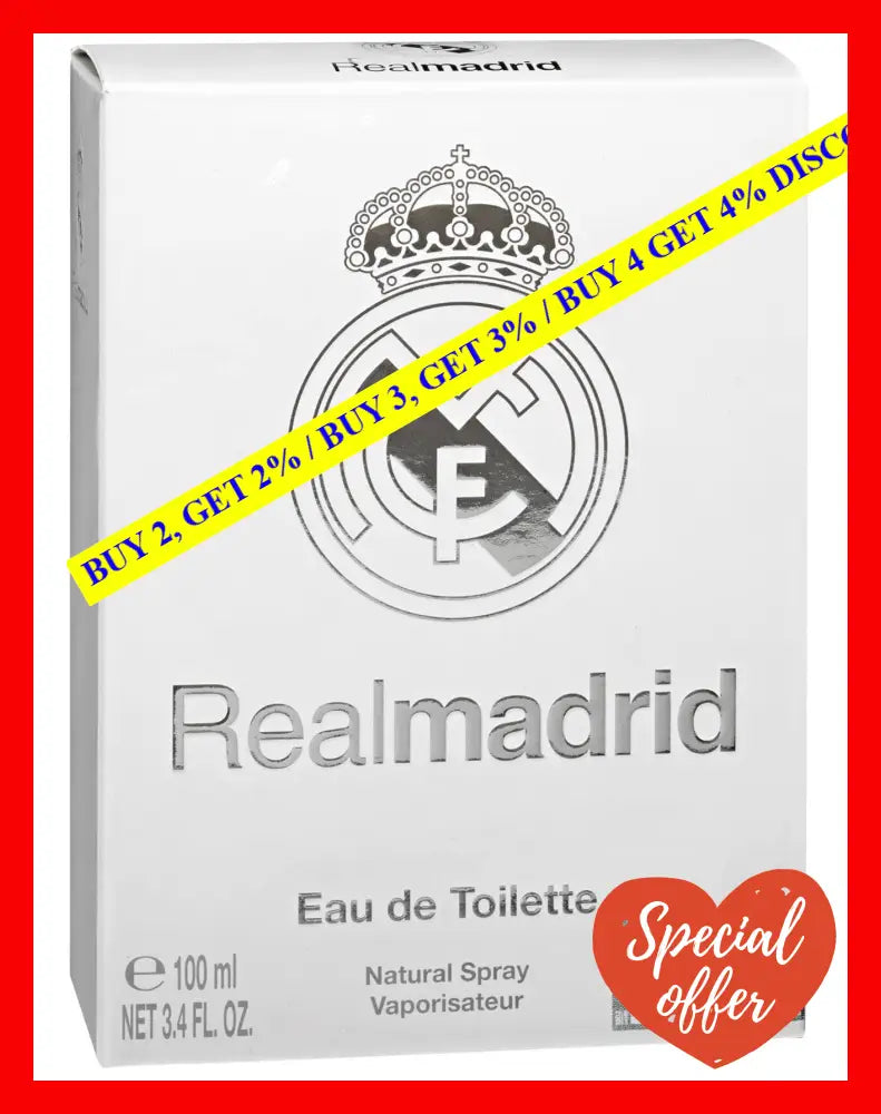 Real Madrid Special Edition Fragrance is a delightful perfume designed specifically for men who are fans of Real Madrid football club. It comes in an eye-catching 3.4oz (100ml) bottle that is easy to use. This fragrance is an Eau De Toilette (EDT), which means it has a balanced scent and is not too overpowering.\n\nThe cologne is presented as a spray, making it an ideal option for daily use, and it is made in Spain by Air Val International, a company renowned for producing quality fragrances.\n\nThe perfume is designed to capture the football spirit of Real Madrid and it is created using only the finest quality ingredients to give out a long-lasting scent. This fragrance has been crafted to appeal to men of all ages and it is a true reflection of the passion and character of the Real Madrid football club.\n\nReal Madrid Special Edition Fragrance is a perfect gift for any discerning fan of the football club, it is a great way to show your support and keep the spirit of Real Madrid alive. So, whether you are going to watch a football match or hanging out with friends, this fragrance will leave you feeling fresh and confident all day long.