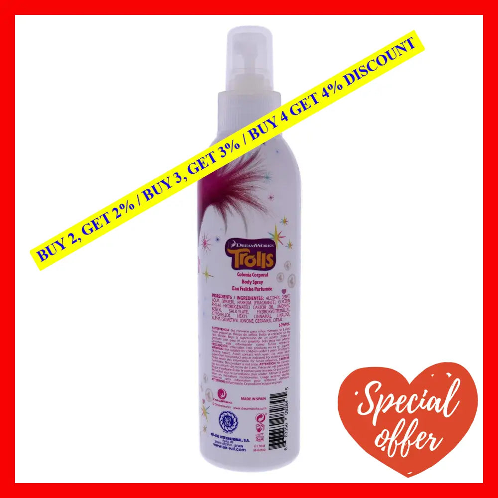 \nNo matter where you or your child go, the Trolls Free To Sparkle by DreamWorks enhances your day with its invigorating and youthful fragrance. Created with high-quality ingredients, this body spray is perfect for all ages, easy to use, and gentle enough for every skin type. Give your child a chance to sparkle and shine with Trolls Free To Sparkle by DreamWorks.