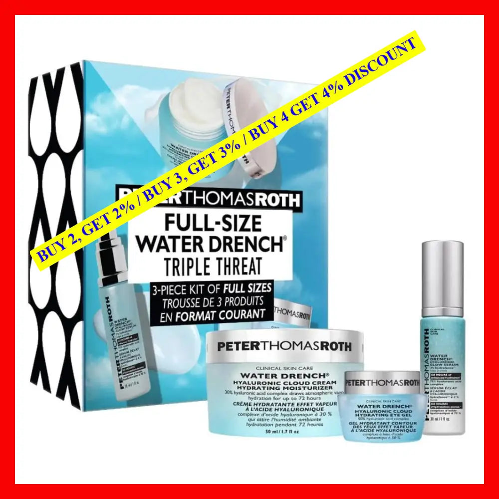 Introducing the Peter Thomas Roth Full Size Water Drench 3-Piece Moisturizer Kit, a must-have for women seeking ultimate hydration and a radiant complexion. This kit includes three revolutionary products that work together to lock in moisture, leaving your skin feeling supple and refreshed.