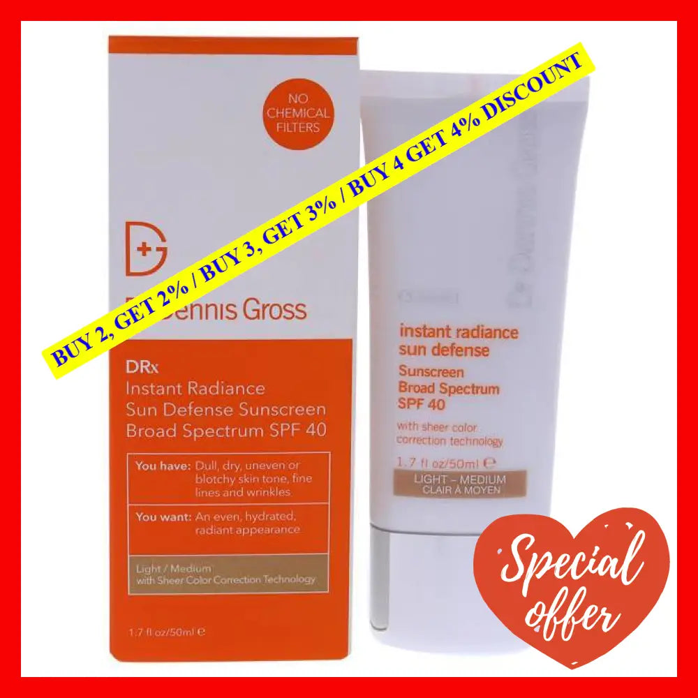 Introducing the Instant Radiance Sun Defense SPF 40 - Light-Medium by Dr. Dennis Gross, a remarkable cream designed to protect and enhance your skin's radiance. Suitable for both men and women, this 1.7 oz cream offers unparalleled sun defense and a natural, light-to-medium coverage.