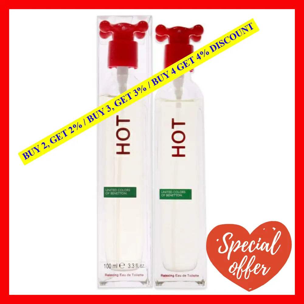 Introducing the captivating fragrance of 'Hot' by United Colors of Benetton! Specially created for women, this exquisite 3.3 oz Eau de Toilette Spray is a delightful blend of scents that will leave you feeling confident, alluring, and irresistibly bold.