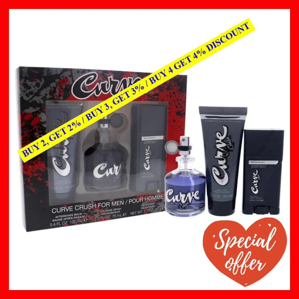 Introducing the Curve Crush by Liz Claiborne for Men 3 Pc Gift Set, the perfect collection for the modern man. This thoughtful set includes a 2.5oz EDC Spray, a 3.4oz After Shave Balm, and a 1.7oz Deodorant Stick, ensuring you have everything you need to stay fresh and confident throughout the day.