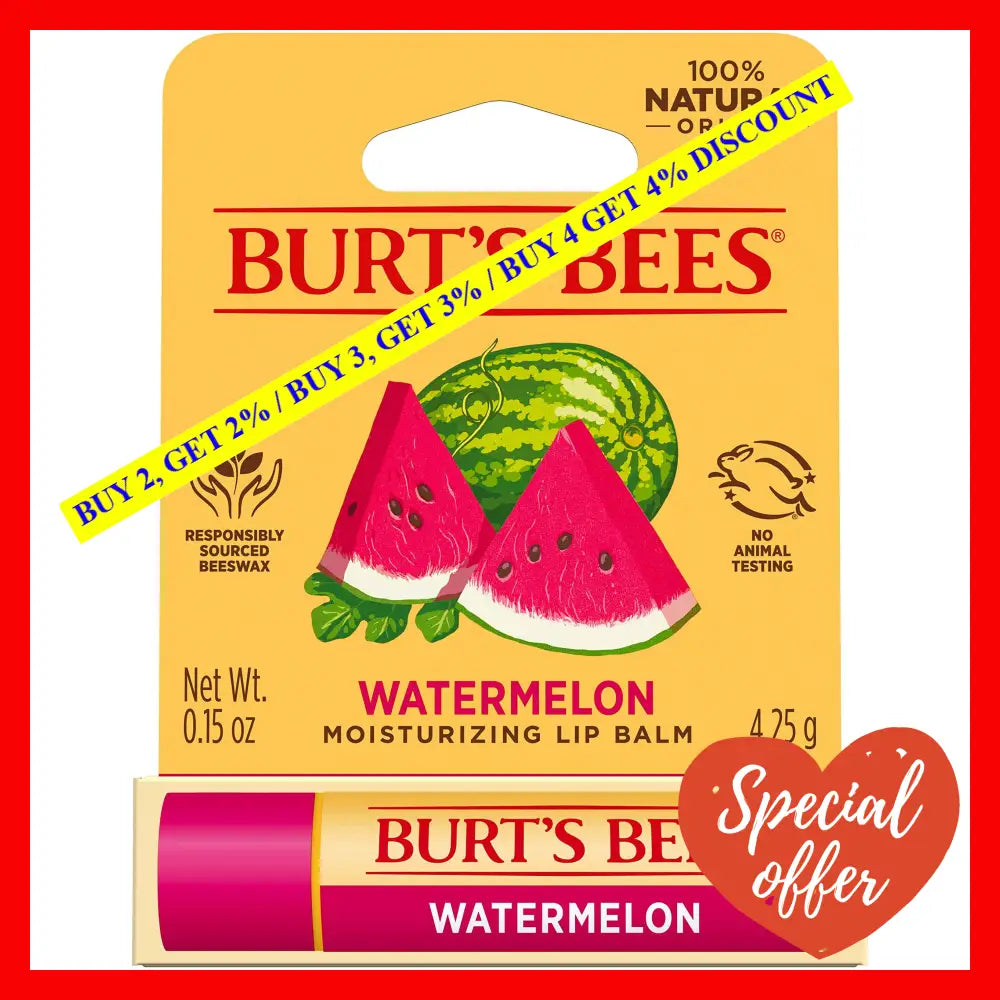 \nExperience the benefits of the Watermelon Moisturizer Lip Balm Blister by Burt's Bees and enjoy naturally beautiful lips all year round. Join the countless satisfied users and give your lips the care they deserve. Say goodbye to dryness and hello to velvety soft lips with this sensational lip balm!