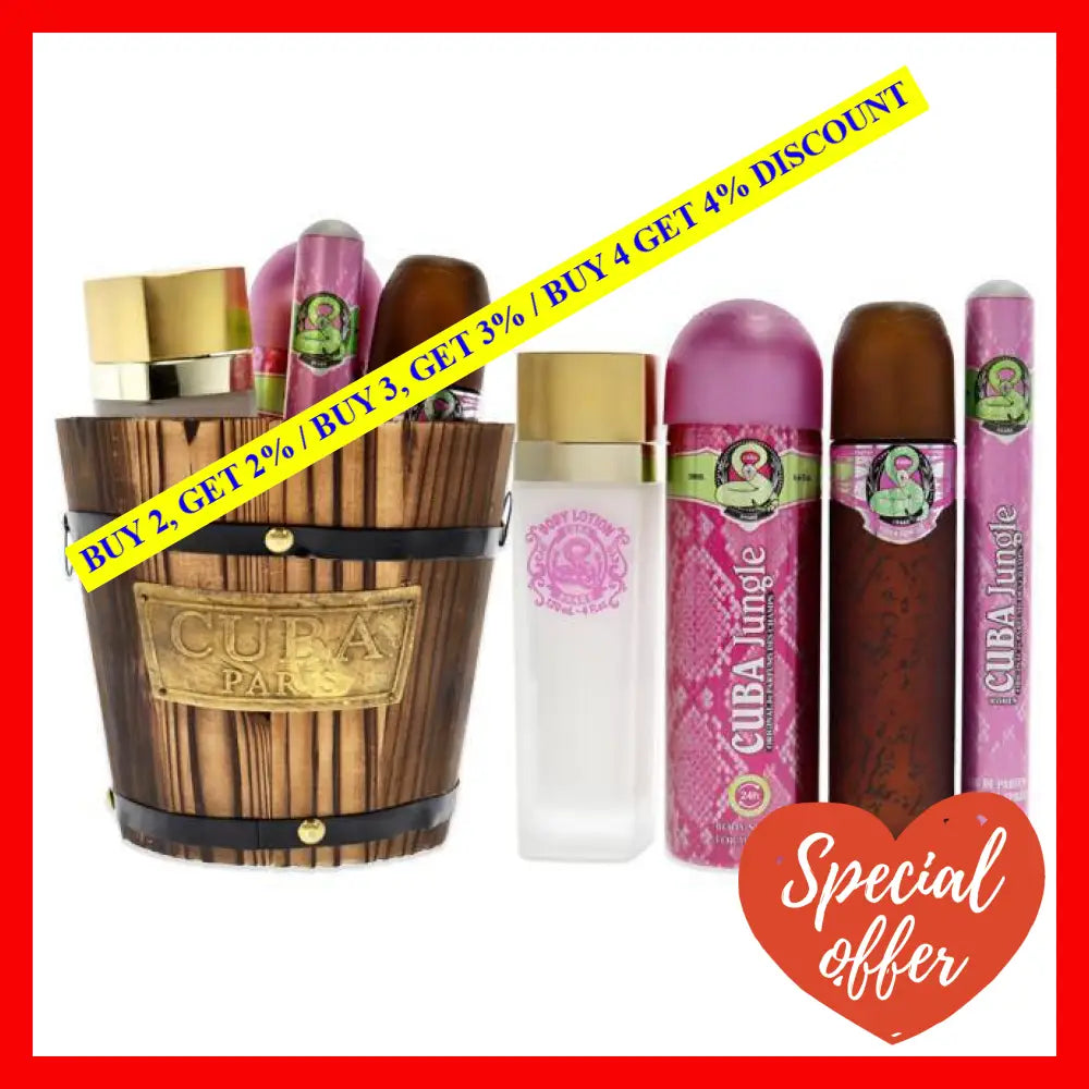 Introducing the Cuba Jungle Snake 4 Pc Gift Set, a luxurious and captivating fragrance collection designed exclusively for women. Immerse yourself in the wild and adventurous world of Cuba with this unique assortment of products, including a 3.3oz EDP Spray, 1.7oz EDP Spray, 6.6oz Body Spray, and a 4oz Body Lotion.