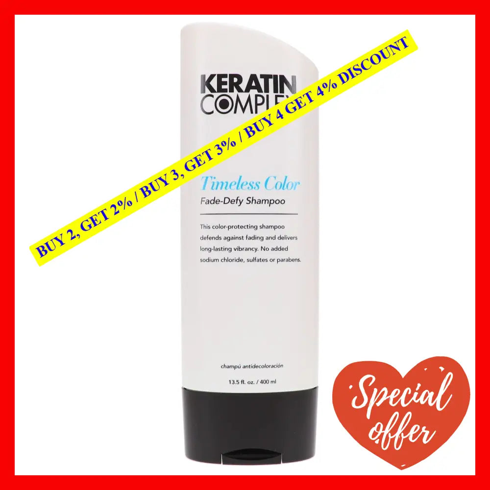 Timeless Color Fade-Defy Shampoo by Keratin Complex is a specially designed shampoo for both men and women. This 13.5 oz bottle of shampoo is perfect to be used regularly to maintain your hair's longevity and vibrancy of color. It is specifically formulated to protect and preserve the color-treated hair of all kinds and textures. It helps in preventing color fading and extends the life of your hair color with its nourishing formula.