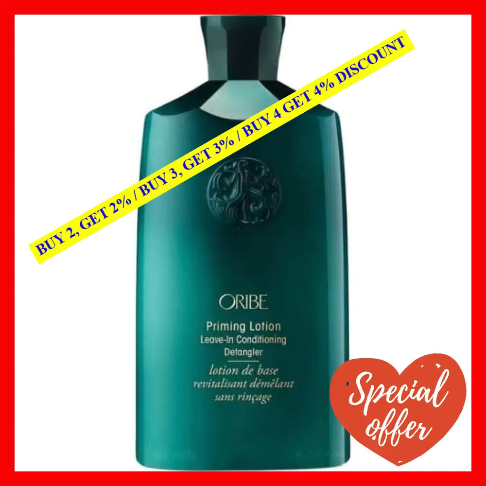 Oribe Priming Lotion Leave-In Conditioning Detangler is an incredible 8.5 oz detangler that has been specifically designed to provide excellent conditioning to your hair. The product is ideal for both men and women and can be used by anyone looking for a hassle-free hair styling experience.\n\nThis unique conditioning formula contains a host of natural ingredients that help to hydrate, nourish, and strengthen your hair. It is infused with Oribe's Signature Complex, which includes watermelon, lychee, and edelweiss flower extracts that work together to protect your hair from damage caused by environmental factors like pollution, UV rays, and heat styling tools.\n\nThis lightweight detangler also contains keratin and hydrolyzed vegetable protein that help to repair and fortify your hair from the inside out. It effectively detangles your hair, making it incredibly easy to comb and style while preventing breakage and split ends. The Priming Lotion Leave-In Conditioning Detangler by Oribe is free from parabens, sulfates, and sodium chloride, making it safe and gentle enough for daily use.\n\nTo use this product, simply apply it to your hair and work it through with your fingers or a wide-tooth comb. You can leave it in your hair all day for maximum benefit or rinse it out after a few minutes for a quick conditioning treatment. The result is healthy, shiny, and lustrous-looking hair that is easy to manage and style.