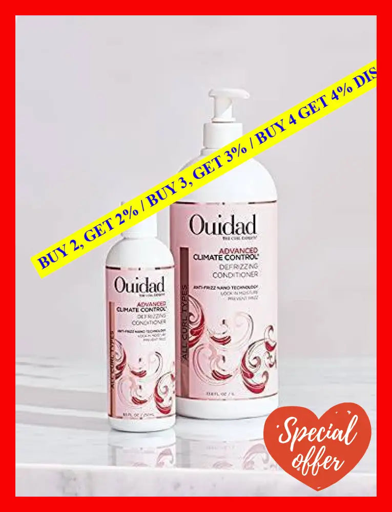 Get rid of frizz once and for all with the Advanced Climate Control Defrizzing Conditioner by Ouidad. This 33.8 oz conditioner is perfect for all hair types and both men and women can benefit from it. It's infused with a blend of natural oils, vitamins, and proteins to restore moisture and nourish hair to prevent frizz and breakage. The conditioner is designed to tame frizz and flyaway strands, leaving your hair soft, silky, and manageable.