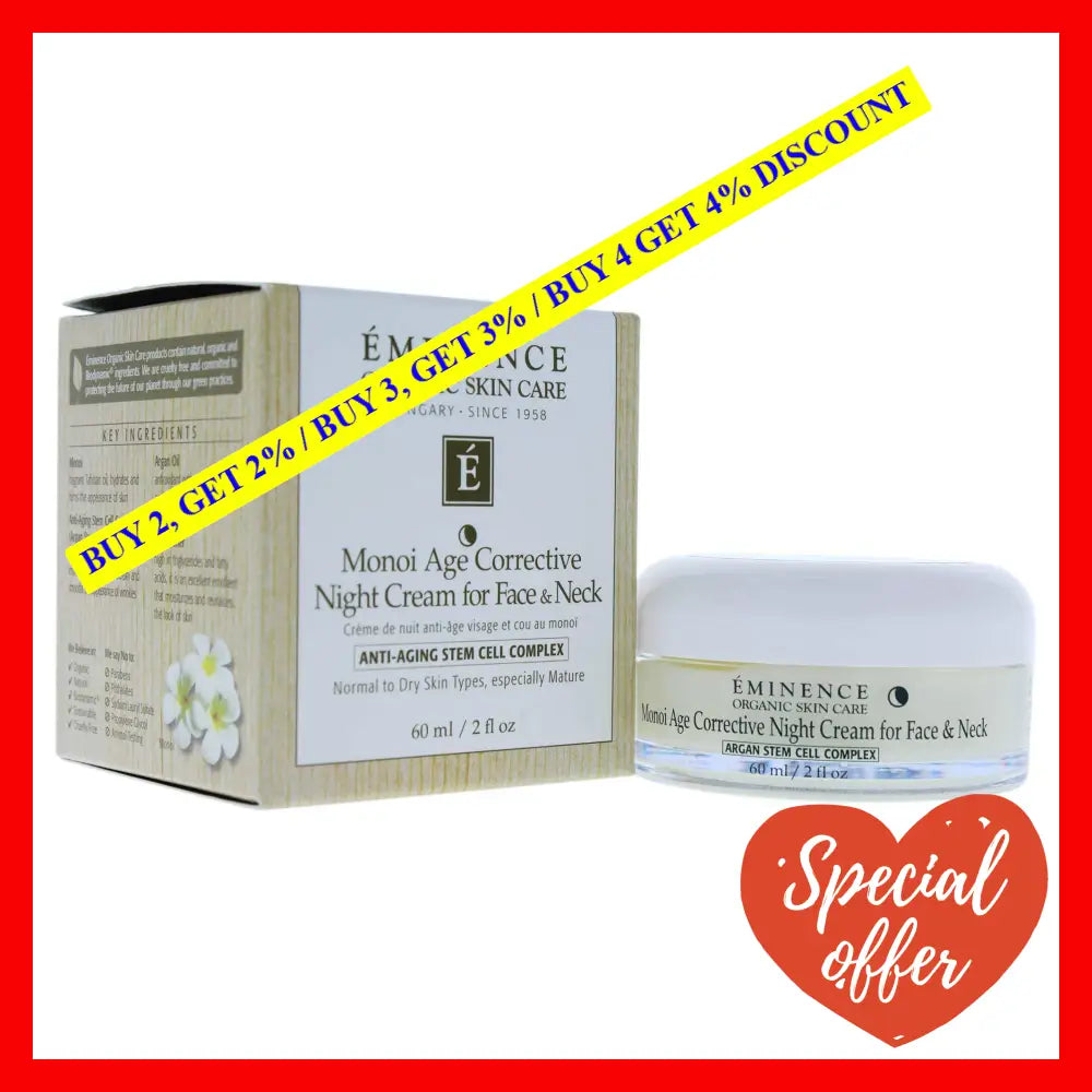\nInvest in the Monoi Age Corrective Night Cream for Face and Neck by Eminence, and unlock the secrets of age-defying skincare. Radiate beauty at any age, with a product that is free from grammatical errors and can be enjoyed by all age groups.