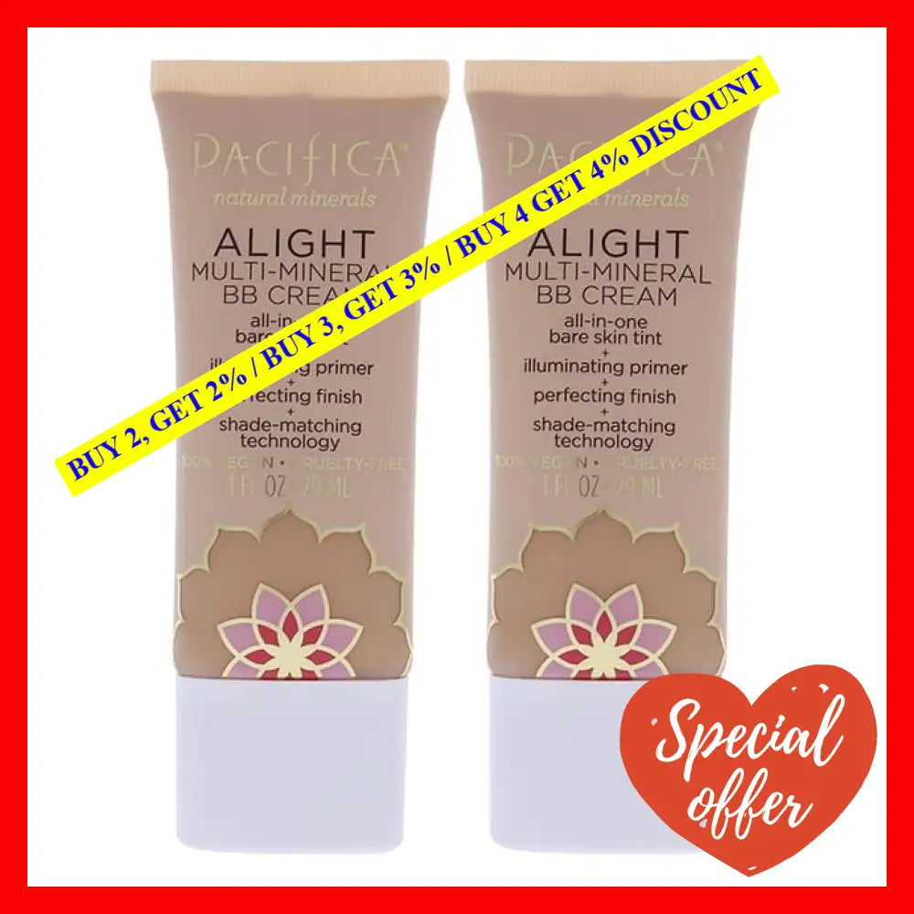 Introducing the Alight Multi-Mineral BB Cream - 6 Medium by Pacifica, the perfect makeup essential for all women. This pack includes two 1 oz tubes of this incredible BB cream, providing you with a long-lasting supply.