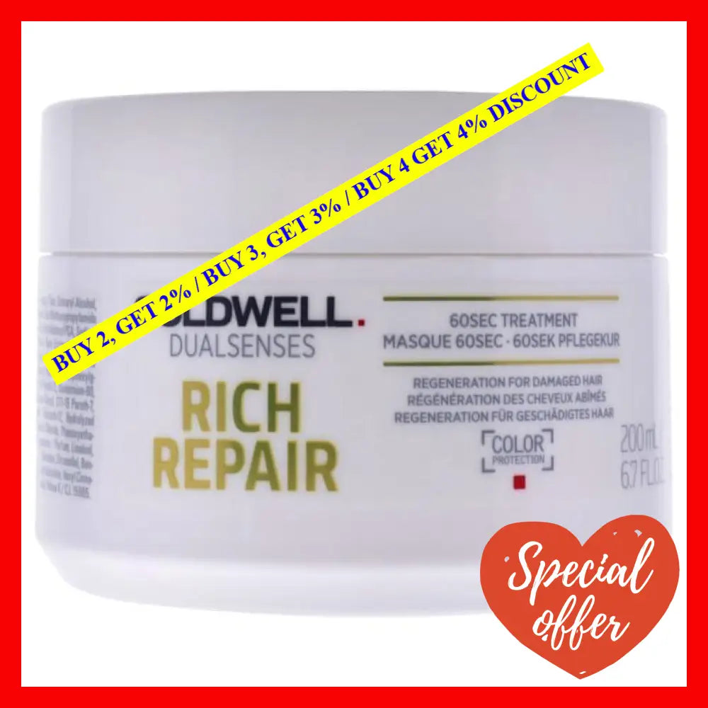 Introducing the Dualsenses Rich Repair 60 Sec Treatment by Goldwell, a revolutionary haircare solution suitable for both men and women. This 6.7 oz Treatment is designed to transform your hair in just 60 seconds, giving you salon-quality results in the comfort of your own home.