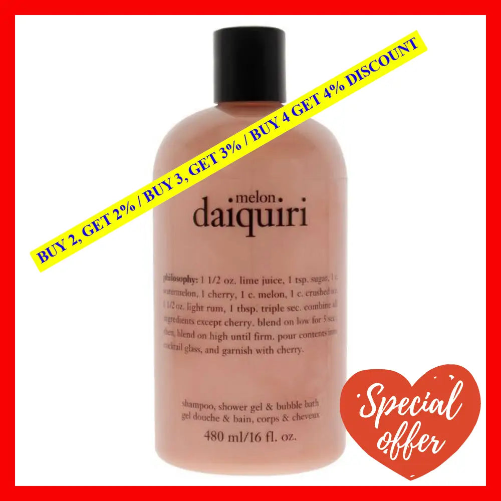 \nTreat yourself to the Melon Daiquiri Shampoo, Bath and Shower Gel By Philosophy, and indulge in a delightful and invigorating shower experience that will leave you feeling refreshed, moisturized, and ready to take on the day!