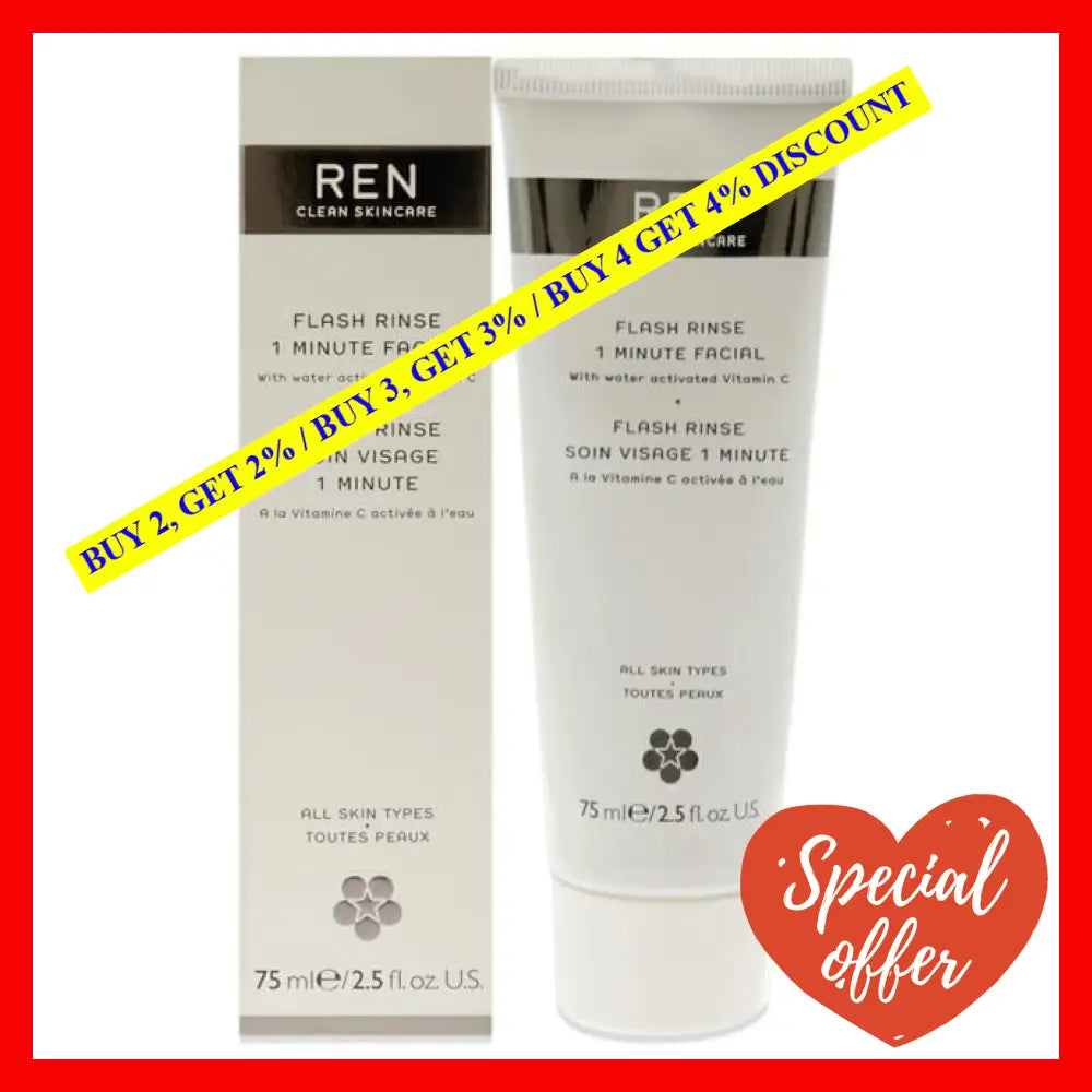 \nExperience the transformative power of Flash Rinse 1 Minute Facial by REN, and discover a new level of radiance. Say goodbye to tired and lackluster skin, and hello to a healthier, more vibrant complexion. Embrace your natural beauty and let this game-changing product redefine your skincare routine.