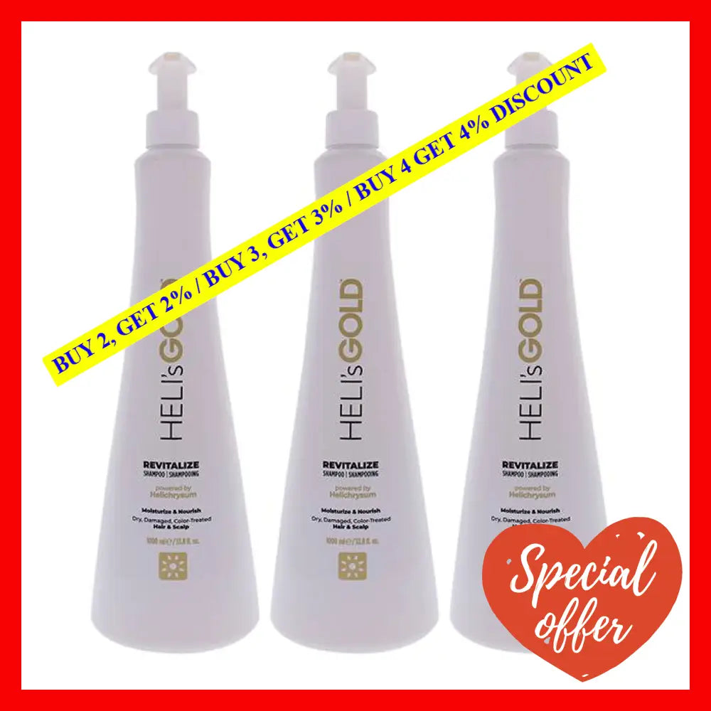 Introducing the Revitalize Shampoo by Helis Gold, a powerful haircare solution designed for both men and women. This incredible shampoo comes in a convenient pack of 3, each containing 33.8 ounces, ensuring a long-lasting supply for your haircare needs.