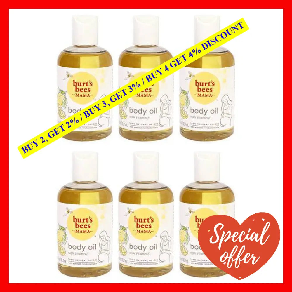 Introducing Mama Bee Nourishing Body Oil by Burt's Bees ?the perfect solution for women seeking luxurious skin hydration and natural nourishment. This pack includes six bottles, each containing 4 ounces of this remarkable oil, designed to bring out the best in your skin.