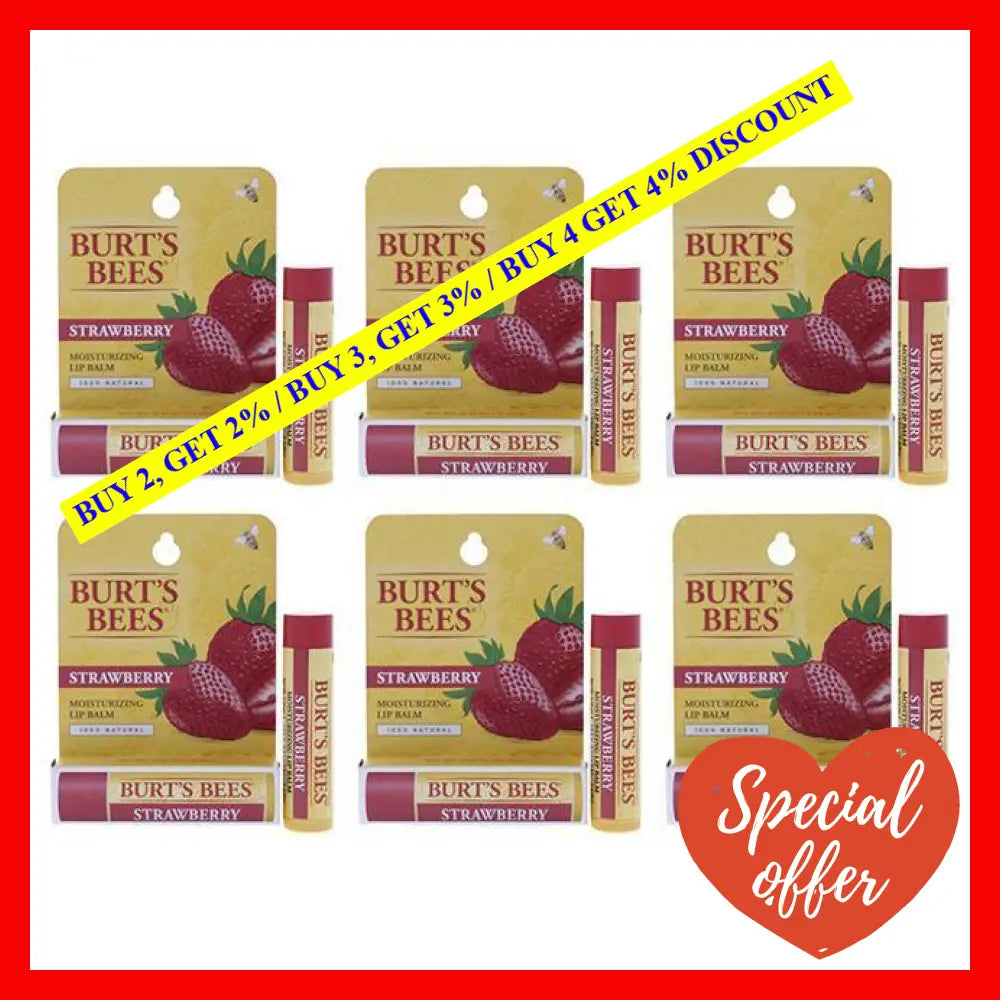 \nSay goodbye to dry, chapped lips and hello to luscious, kissable lips with the Strawberry Moisturizing Lip Balm Blister by Burt's Bees. Grab the pack of 6 now and experience the goodness of nature in every swipe. Perfect as a gift or for personal use, this lip balm is a must-have essential for everyone.