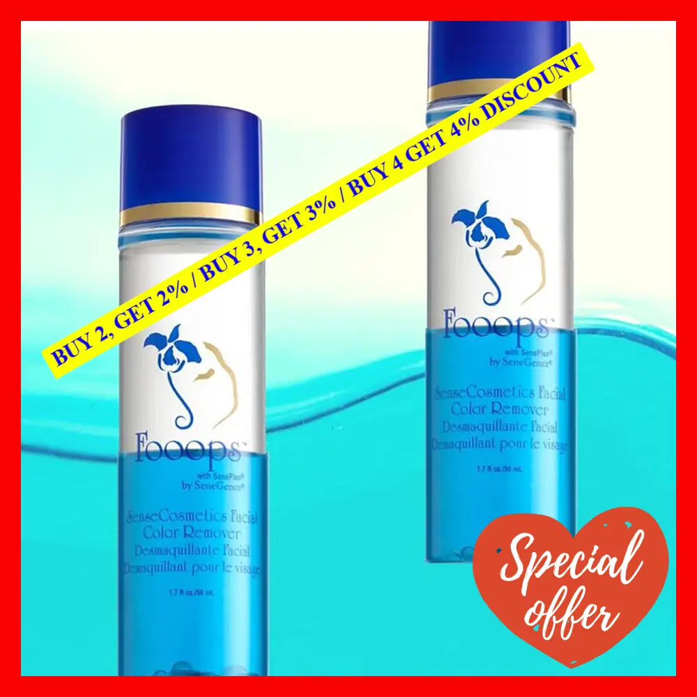 \nIn conclusion, the Fooops SenseCosmetics Dual Phase Color Remover by SeneGence is a necessary addition to your makeup kit. It is incredibly effective and reliable while being safe for all skin types. Get it now and enjoy a hassle-free and effective makeup removal experience!