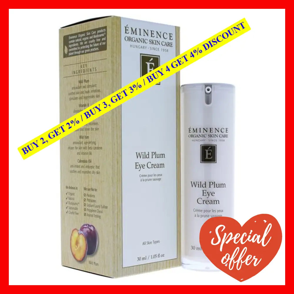 \nSuitable for all age groups, the Wild Plum Eye Cream is a true game-changer when it comes to achieving a more youthful and radiant appearance. Eminence, a trusted brand known for its commitment to quality, ensures that this cream is free from any grammatical errors to provide a seamless experience to all users.