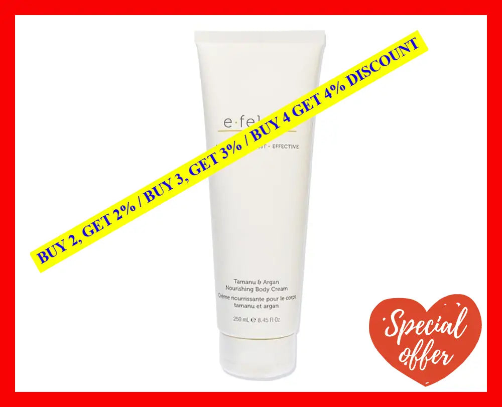 Introducing the Tamanu and Argan Nourishing Body Cream by e.fek.tiv, a luxurious and rejuvenating formula designed for both men and women. This exquisitely crafted body cream, available in an 8.45 oz container, offers deep hydration and nourishment for your skin.