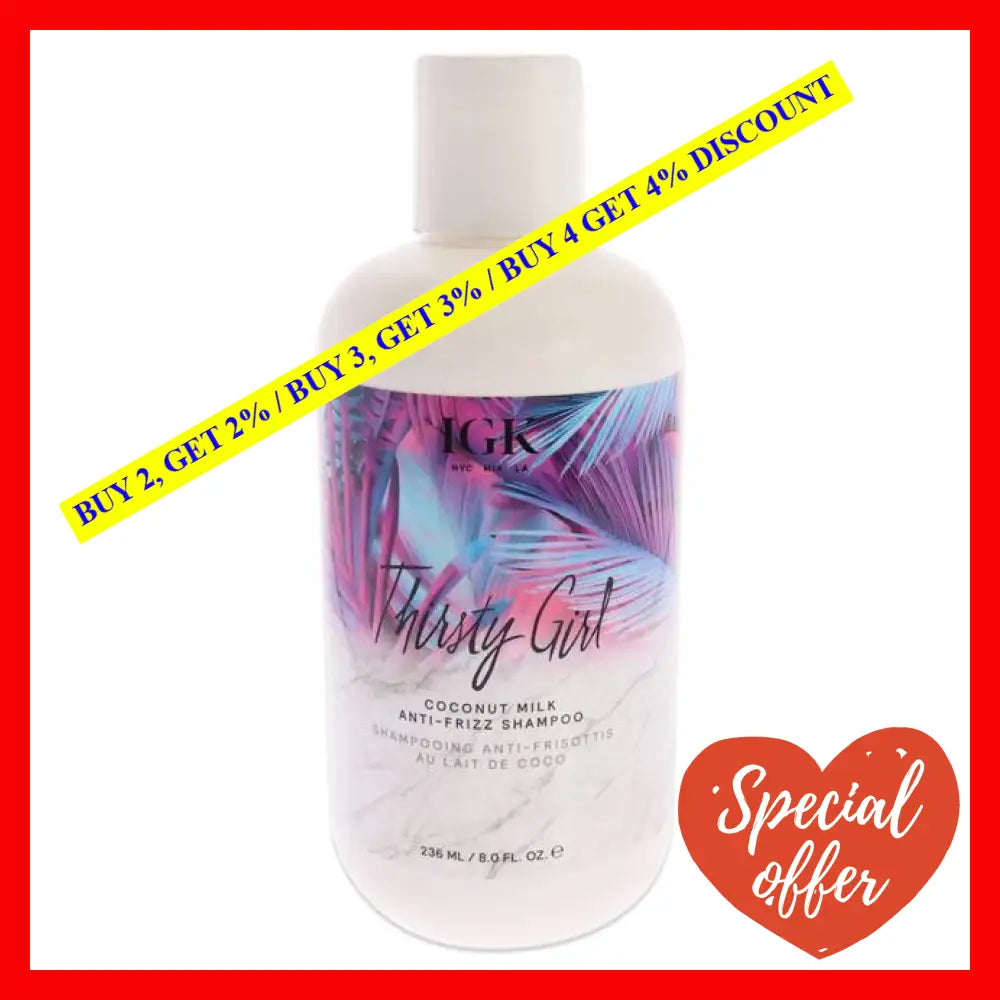Introducing Thirsty Girl Coconut Milk Anti-Frizz Shampoo by IGK, the perfect solution for frizzy hair woes. This incredible shampoo is suitable for all genders and hair types, providing a refreshing and effective way to tame frizz.