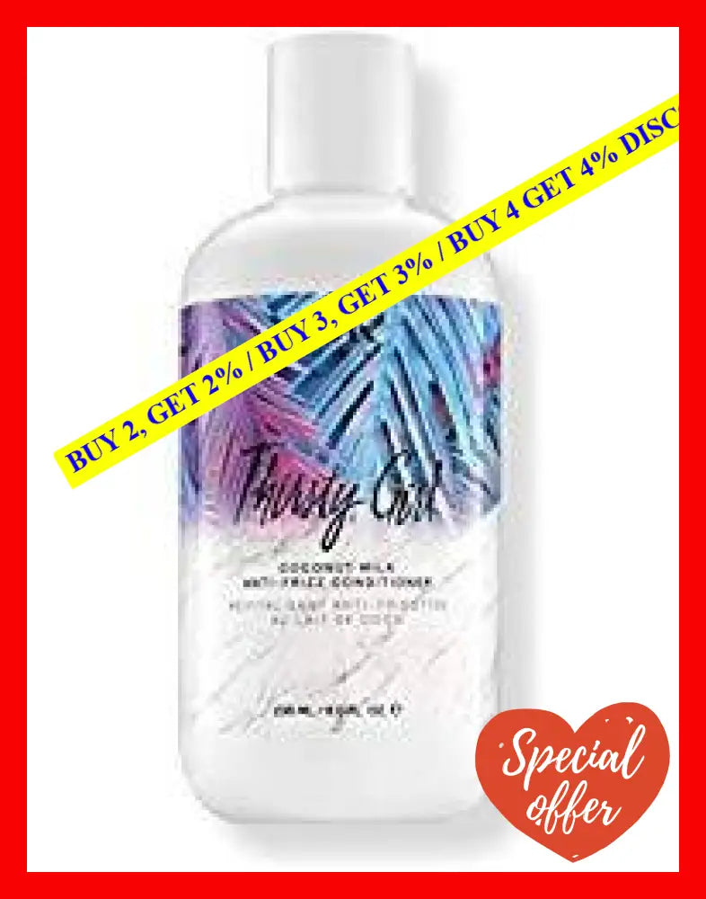 \nSay goodbye to damaged hair with this conditioner, which works by strengthening the hair and preventing breakage from daily styling. It also adds intense shine and volume, making your hair look luscious and beautiful. The Thirsty Girl Coconut Milk Anti-Frizz Conditioner is free of harmful chemicals like sulfates, parabens, and phthalates, making it safe to use on all hair types. Its anti-frizz formula coats each strand of hair, providing a smooth and silky texture.