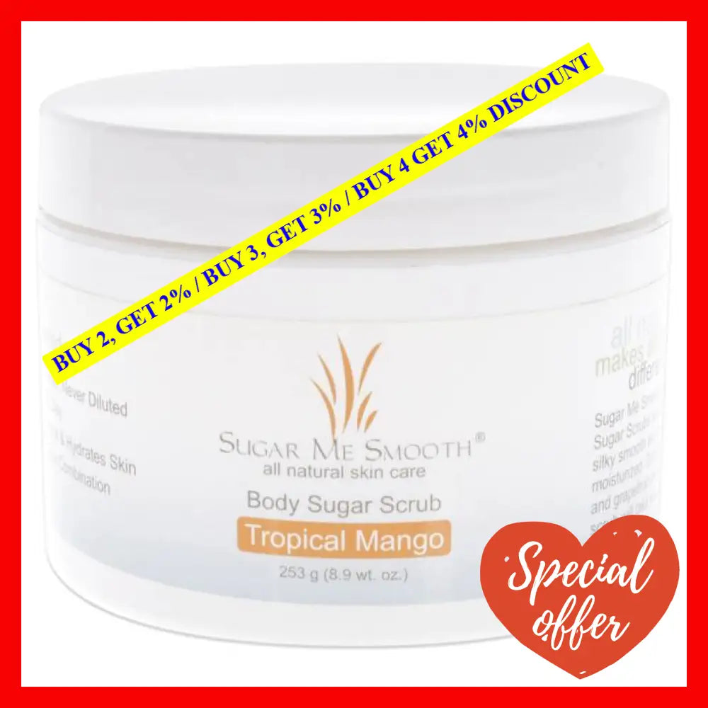 Introducing the Body Scrub - Tropical Mango by Sugar Me Smooth, the ultimate exfoliating experience for both men and women. This 8.9 oz scrub is carefully crafted to gently remove dead skin cells, revealing smoother and more revitalized skin.