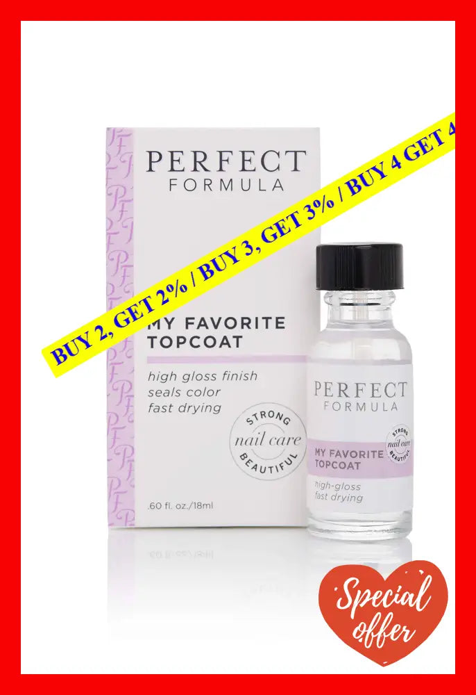 \nGone are the days when your nails got chipped or peeled off within a few days of applying nail polish. With My Favorite Topcoat by Perfect Formula, you can now enjoy a flawless manicure that lasts up to a week. The topcoat is easy to apply and dries quickly, thus ensuring that your nail polish doesn't smudge or smear.