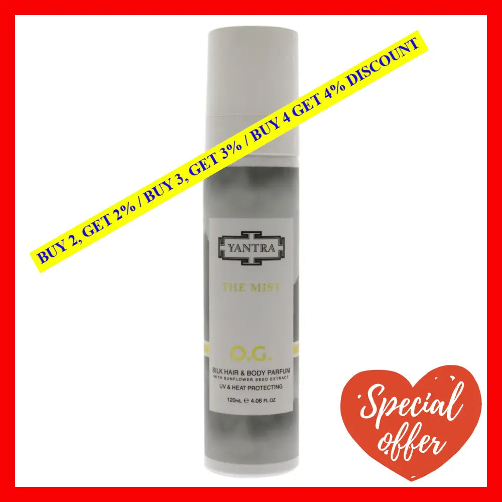 The Mist OG Silk Hair and Body Parfum by Yantra for Women is a luxurious, refreshing, and long-lasting fragrance that can be used on both hair and body. It comes in a 4.06 oz body mist that has a delightful aroma that will captivate your senses and leave you feeling refreshed and confident throughout the day.