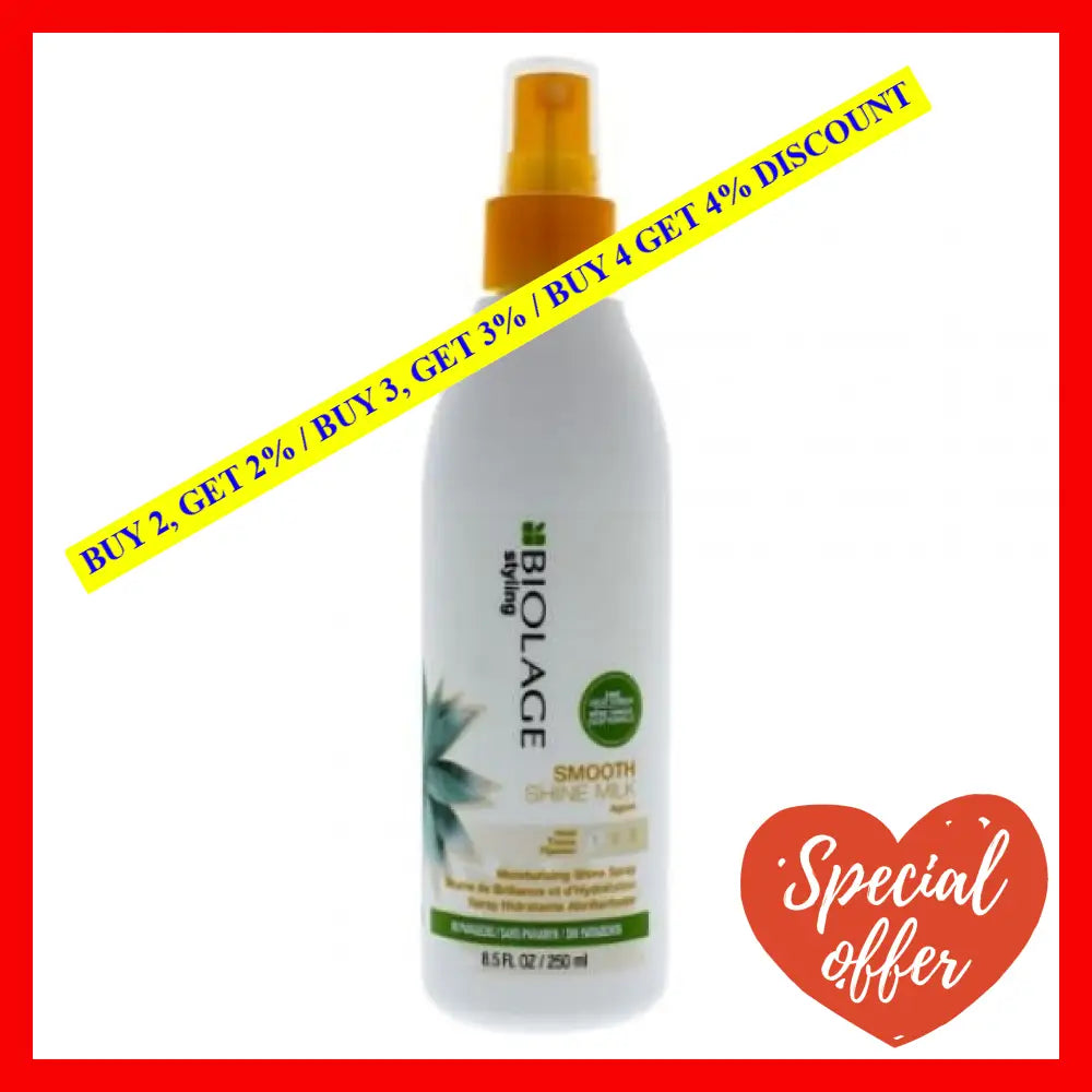 Biolage Smooth Shine Milk by Matrix is an exceptional hair care product that helps provide ultimate smoothness and shine to your hair. This magnificent product is designed to fit the needs of both men and women. The Biolage Smooth Shine Milk is an 8.5 oz milk that helps tame frizz and improves manageability to your hair. It is a perfect solution for people who are dealing with dull, lifeless, and dry hair.\n\nThis Biolage Smooth Shine Milk is enriched with a blend of natural ingredients including camellia, sesame seeds, and shea butter. These ingredients help nourish and strengthen your hair, leaving it looking silky and healthy. The milk is also infused with an advanced smoothing technology that makes your hair more manageable and smooth.\n\nUsing Biolage Smooth Shine Milk is incredibly easy. You just need to take a small amount of milk and apply it evenly to your hair. It is recommended to use it after washing your hair or whenever your hair needs some nourishment and shine. The Biolage Smooth Shine Milk is suitable for all hair types and is free from harmful chemicals, making it an ideal choice for every age group.\n\nIn conclusion, Biolage Smooth Shine Milk by Matrix is a must-have for anyone looking for a quick and easy solution to dull, lifeless, and dry hair. It provides ultimate smoothness and shine to your hair, making it look beautiful and healthy. So, why wait? Order your Biolage Smooth Shine Milk today and experience the magic!
