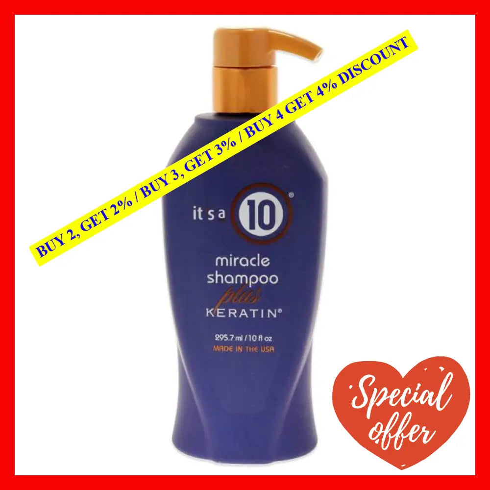 Introducing the Miracle Shampoo Plus Keratin by Its A 10 - your hair's new best friend! Designed for both men and women, this incredible formula is available in a convenient 10 oz size. Say goodbye to bad hair days and hello to luscious locks that will turn heads wherever you go.