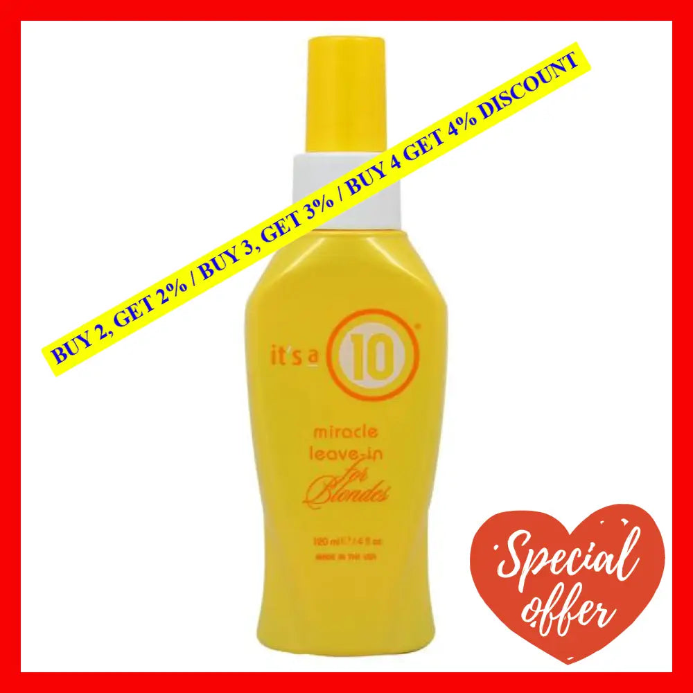 Introducing the miraculous hair treatment specially formulated for blondes - the Miracle Leave-In For Blondes by Its A 10! This innovative, unisex product comes in a convenient 4 oz bottle, crafted with care to cater to all age groups. Say goodbye to dull, lifeless hair and embrace the radiance and vibrancy that blondes deserve!