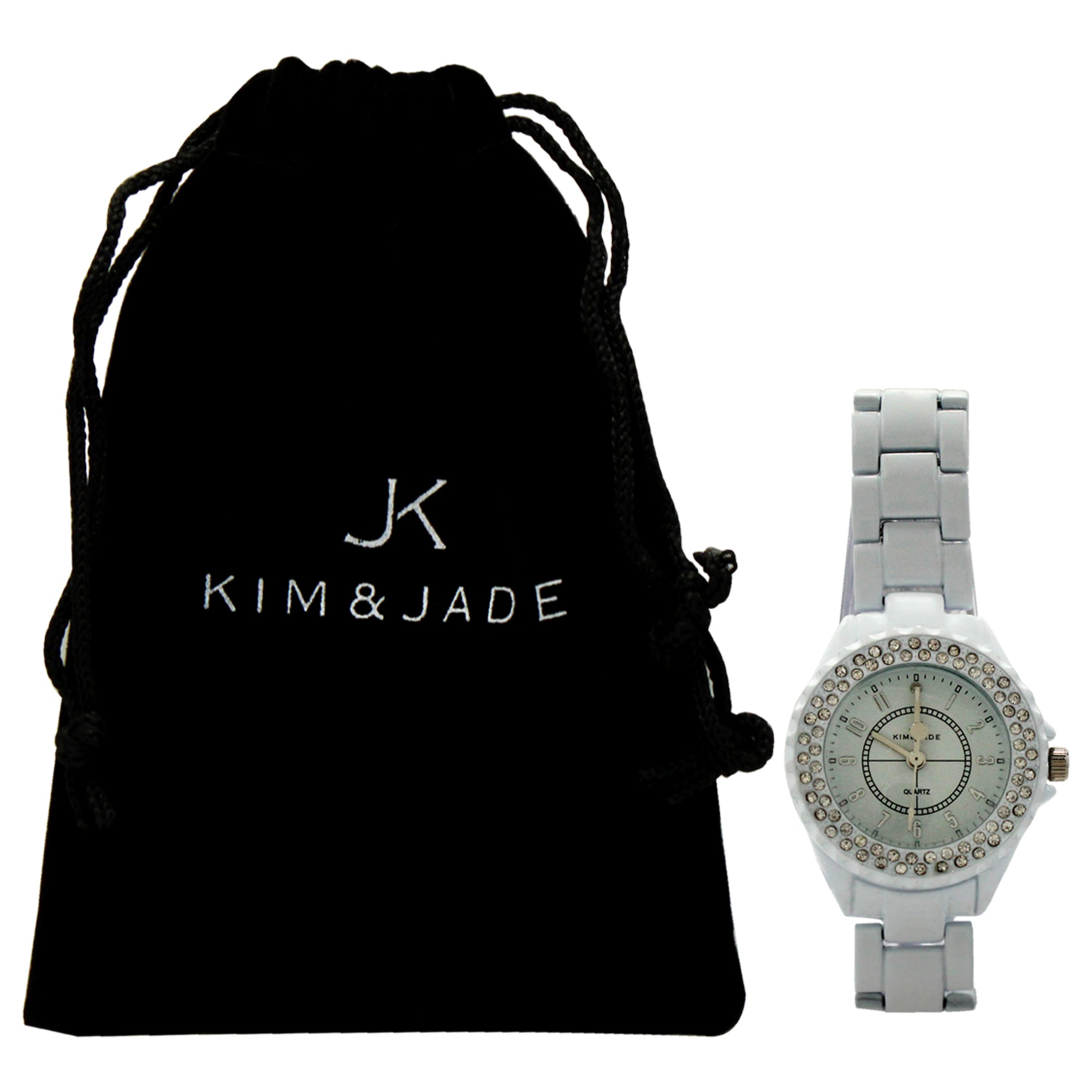 1. Overview: The 2033LWW White Stainless Steel Bracelet Watch by Kim Jade for Women combines elegant design with reliable functionality, making it a stylish accessory for any outfit.