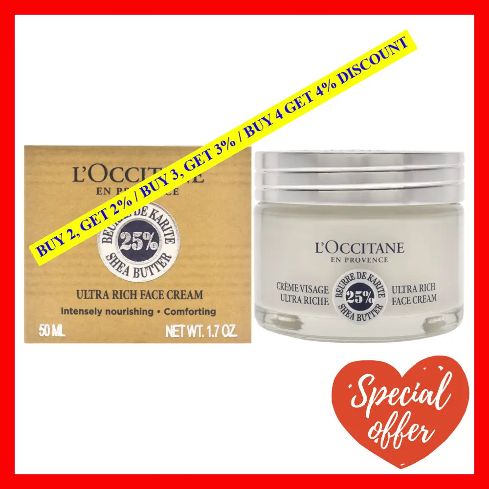 Introducing the Shea Butter Ultra Rich Face Cream by L'Occitane, a must-have skincare product suitable for both men and women. This 1.7 oz face cream is crafted with care, designed to nourish and hydrate your skin for a truly radiant complexion.
