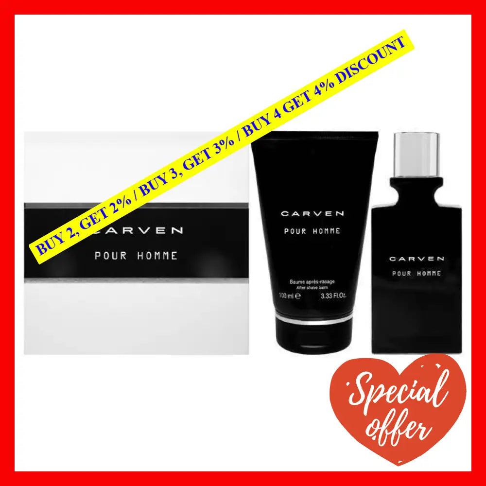 Introducing Carven Pour Homme by Carven for Men, a delightful 2-piece gift set that will give you a sophisticated and refreshing fragrance experience. This set includes a 1.66oz EDT spray and a 3.33oz after shave balm, perfect for any man who appreciates a touch of elegance in his grooming routine.