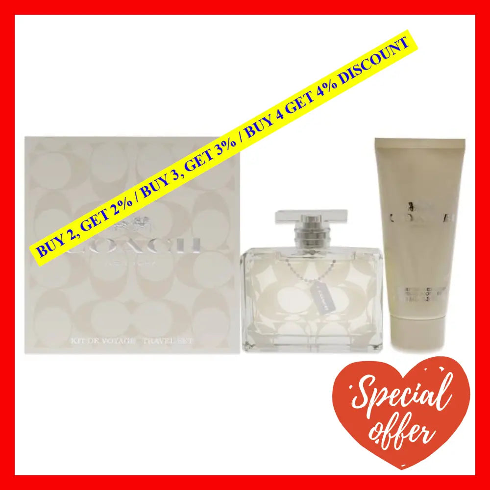 The Coach Signature 2 Pc Gift Set is the perfect present for any woman in your life. This set includes a 3.3oz EDP spray and a 3.3oz body lotion, both featuring the iconic Coach Signature fragrance.