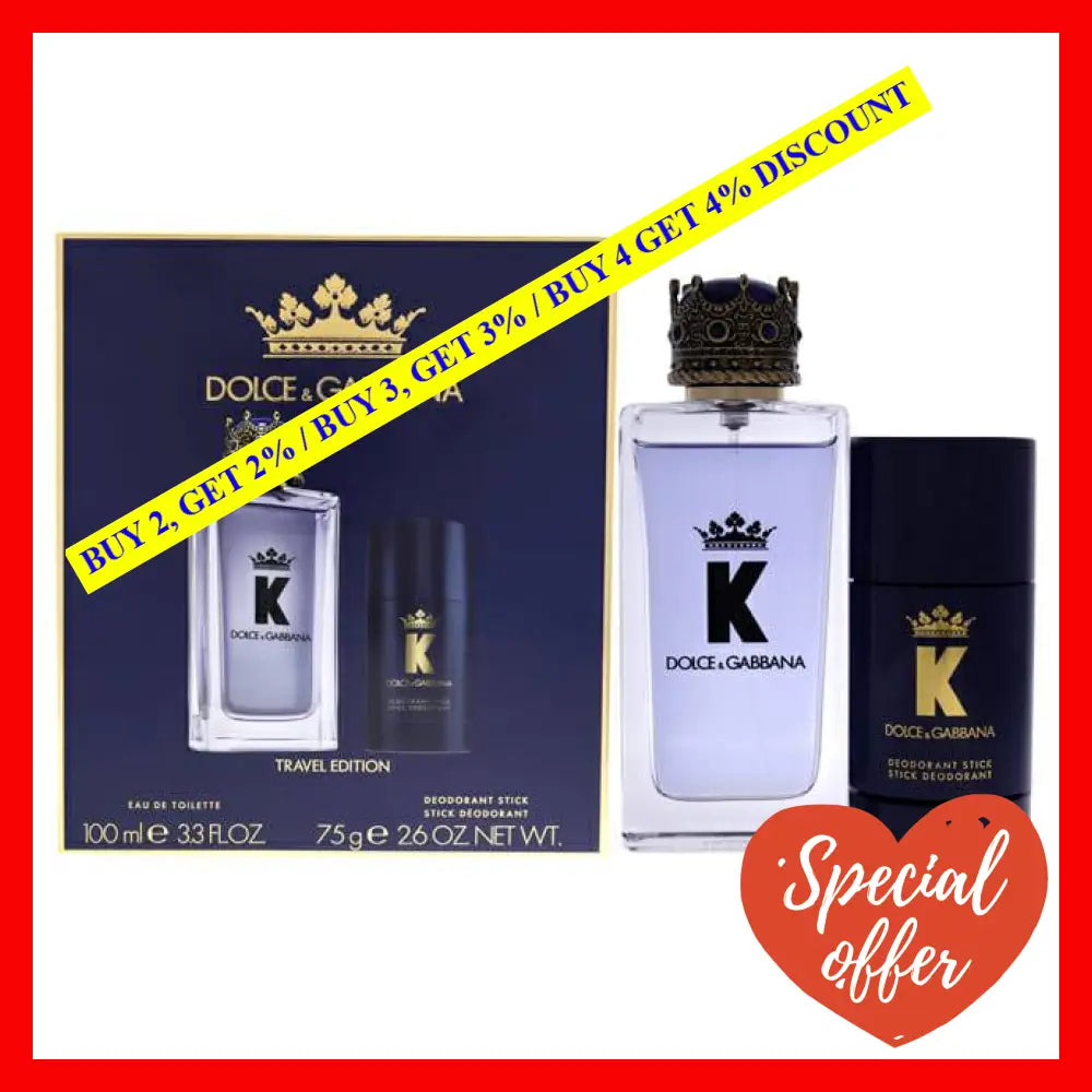 Introducing the captivating and timeless fragrance gift set of 'K' by Dolce and Gabbana for Men. This exquisite set includes a 3.3oz Eau de Toilette Spray and a 2.6oz Deodorant Stick, offering the perfect combination for the modern gentleman.