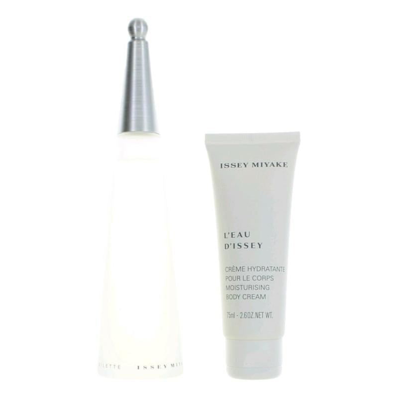 \nThe set includes a 3.3 oz Eau de Toilette spray and an indulgent 2.5 oz Body Lotion. Inspired by the elements of nature, L'Eau D'Issey is a refreshing scent that combines floral and aquatic notes with a touch of woody undertones. It opens with the sparkly freshness of lotus, melon, and freesia, followed by a graceful blend of lily and peony. The base notes reveal a comforting mix of cedar, sandalwood, and musk, leaving a lingering and unforgettable impression.