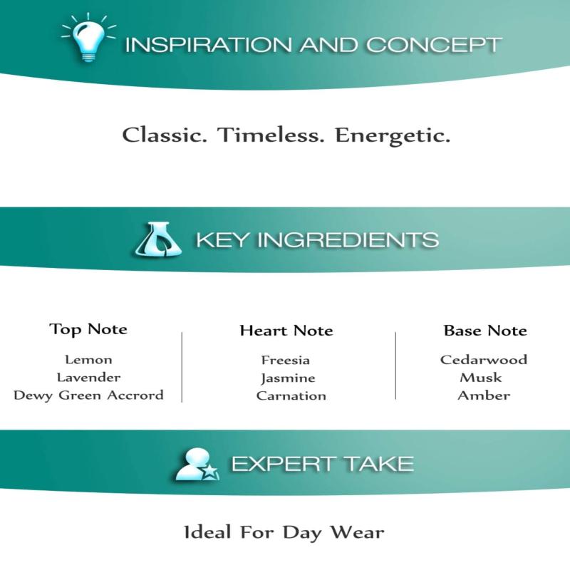 \nThe perfume opens with a fresh and invigorating blend of bergamot, lemon, and coriander. The heart of the fragrance is composed of herbs and spices that give it a distinctive edge. Sage, jasmine, and cinnamon are blended together to create an aroma that is both masculine and sophisticated. The base notes of patchouli, sandalwood, and cedarwood add warmth and depth to the scent.