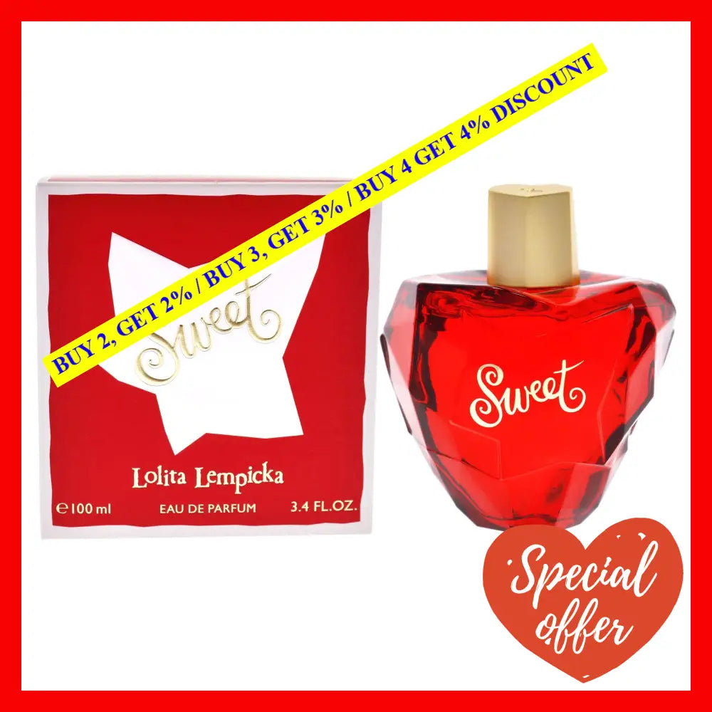 \nThe bottle of Sweet by Lolita Lempicka for Women is stylish and elegant, with a curved shape that is reminiscent of a candy apple. The fragrance is presented in a 3.4 oz EDP spray bottle, making it easy to apply and perfect for everyday use.