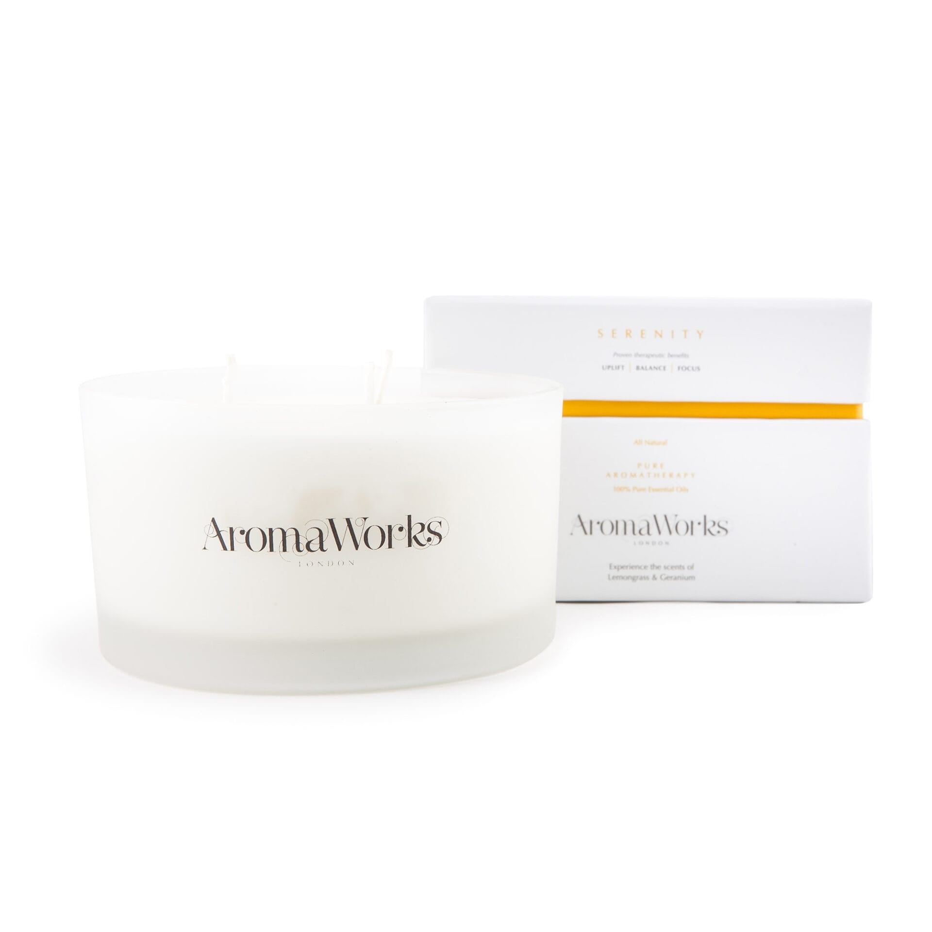Introducing the Serenity Candle 3 Wick Large by Aromaworks, the perfect addition to your space for a soothing and relaxing atmosphere. This 14.1 oz candle is designed to be enjoyed by both men and women, making it a versatile choice for any household.