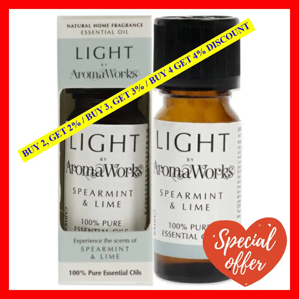 \nThe Light Essential Oil - Spearmint and Lime by Aromaworks is easy to use and can be incorporated into your daily routine effortlessly. Simply add a few drops to your diffuser or bath, or mix with a carrier oil for a soothing massage experience. Whether you're seeking stress relief, mood enhancement, or a boost in concentration, this oil is the perfect solution.