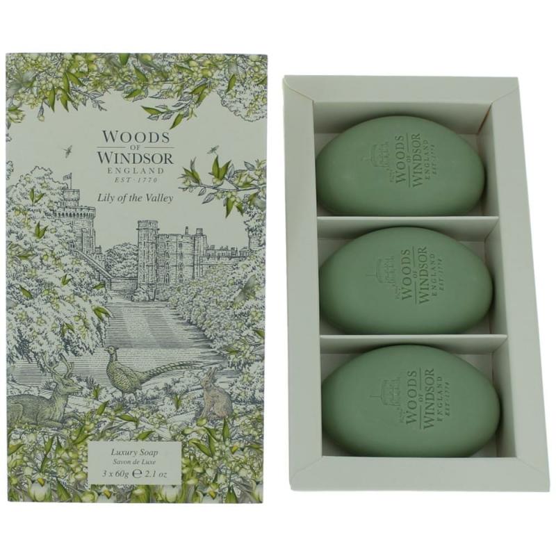 \nThe Woods Of Windsor Lily Of The Valley Luxury Soap Set features three perfectly sized 2.1 oz bars, making it convenient for travel or daily use. Indulge yourself in the timeless elegance and timeless fragrance of Lily of the Valley. This soap set also makes a thoughtful gift for loved ones, elegantly presented in its distinctive packaging.