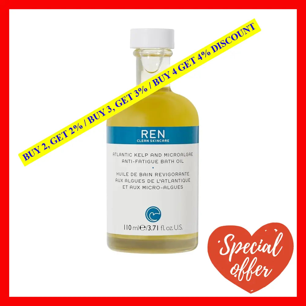 The Ren Atlantic Kelp and Microalgae Anti-Fatigue Bath Oil is a luxurious and rejuvenating bath oil that is perfect for anyone looking for an indulgent soak. Made from a blend of Atlantic Kelp Extract, Microalgae Oil, and Plankton Extract, this bath oil is formulated to help combat fatigue and revive the senses.\n\nThe Atlantic Kelp Extract helps to nourish the skin, while the Microalgae Oil helps to energize and illuminate the complexion. The Plankton Extract provides a calming and soothing effect, leaving you feeling relaxed and refreshed.\n\nThis bath oil is suitable for all skin types and is easy to use. Simply add a few drops to your bathwater and let the oil work its magic. The 3.7 oz bottle is perfect for travel or for use at home.\n\nOverall, the Ren Atlantic Kelp and Microalgae Anti-Fatigue Bath Oil is a must-have for anyone looking to pamper themselves and reduce feelings of stress and fatigue. It is a luxurious treat that will leave you feeling rejuvenated and refreshed.