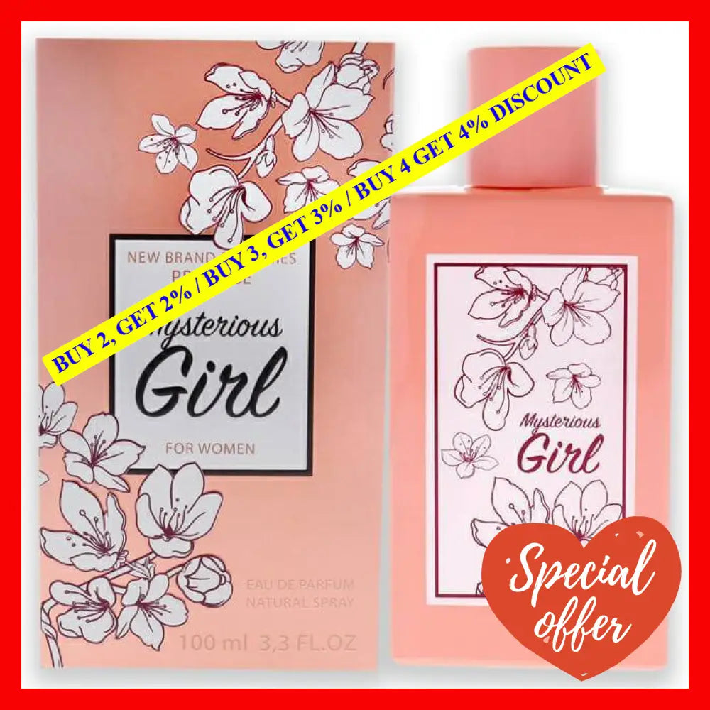 Introducing 'Mysterious Girl' by New Brand, a captivating fragrance designed exclusively for women. This enchanting perfume comes in a generous 3.3 oz Eau de Parfum spray, allowing you to indulge in its alluring scent that lasts all day long.